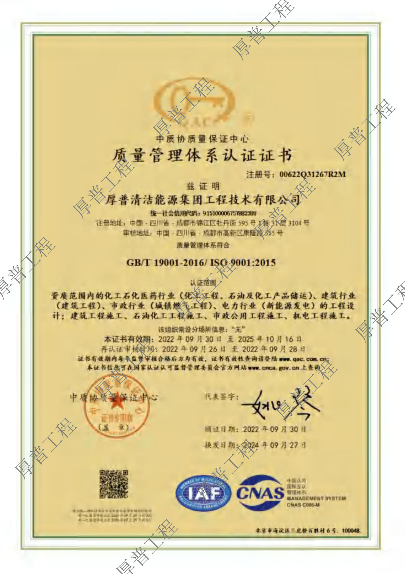 厚普清洁能源集团工程技术有限公司(简称“厚普工程”)成立于2008年,是厚普清洁能源(集团)股份有限公司的全资子公司。厚普工程是国内兼具清洁能源工程设计与施工双资质的综合性工程公司。拥有石油天然气(海洋石油)、市政(城镇燃气)、化工医药、电力、建筑、环保六大行业的甲乙级工程设计咨询资质以及石油化工施工总包二级、机电总包二级、建筑总包二级等十项施工资质。
