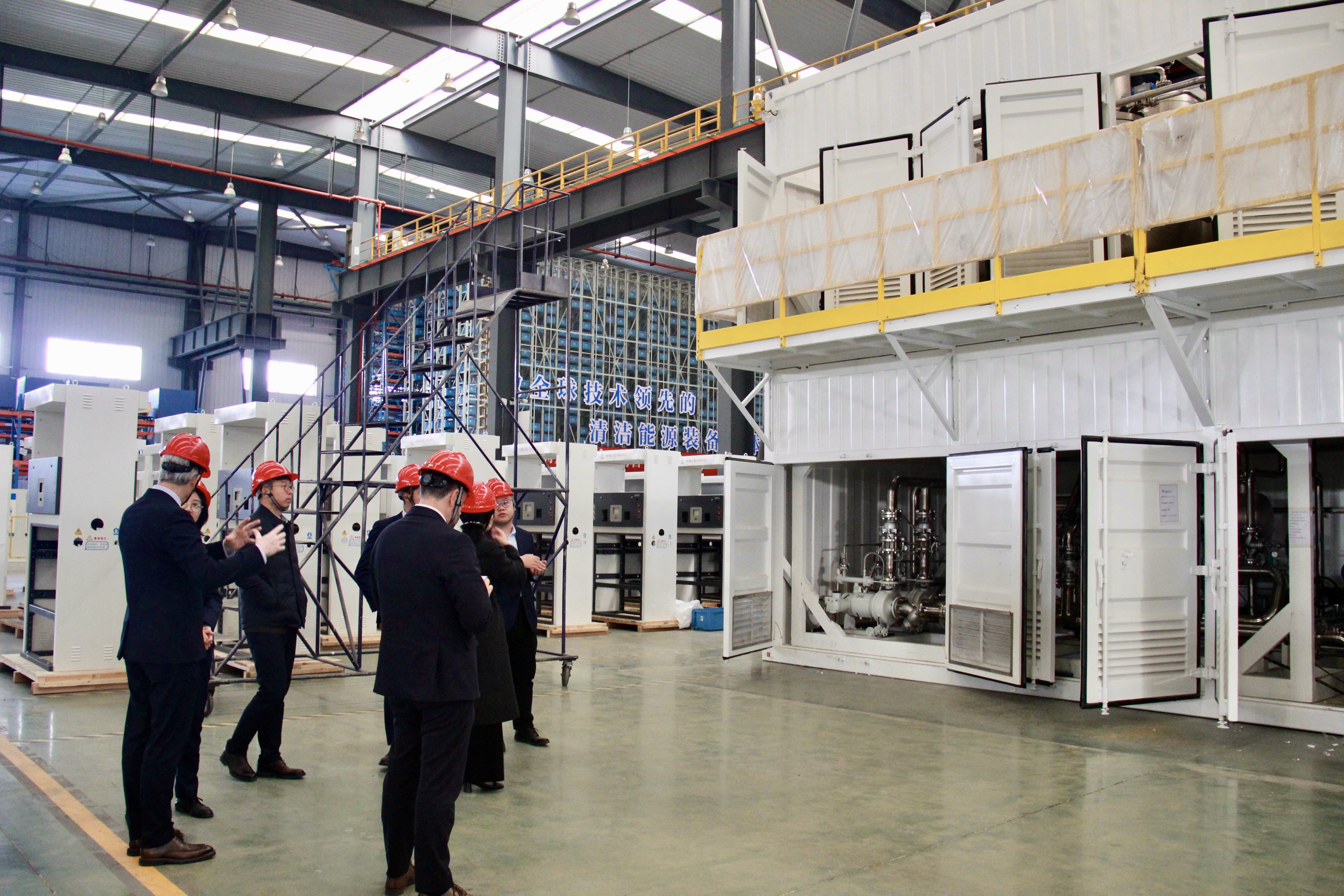 代表团一行首先参观了厚普股份的企业展厅与总装车间,实地考察了公司在氢能装备制造、技术研发与系统解决方案等方面的综合实力,并对厚普在氢能“制、储、加、用”全链条的产业布局以及制氢技术能力表示高度认可。