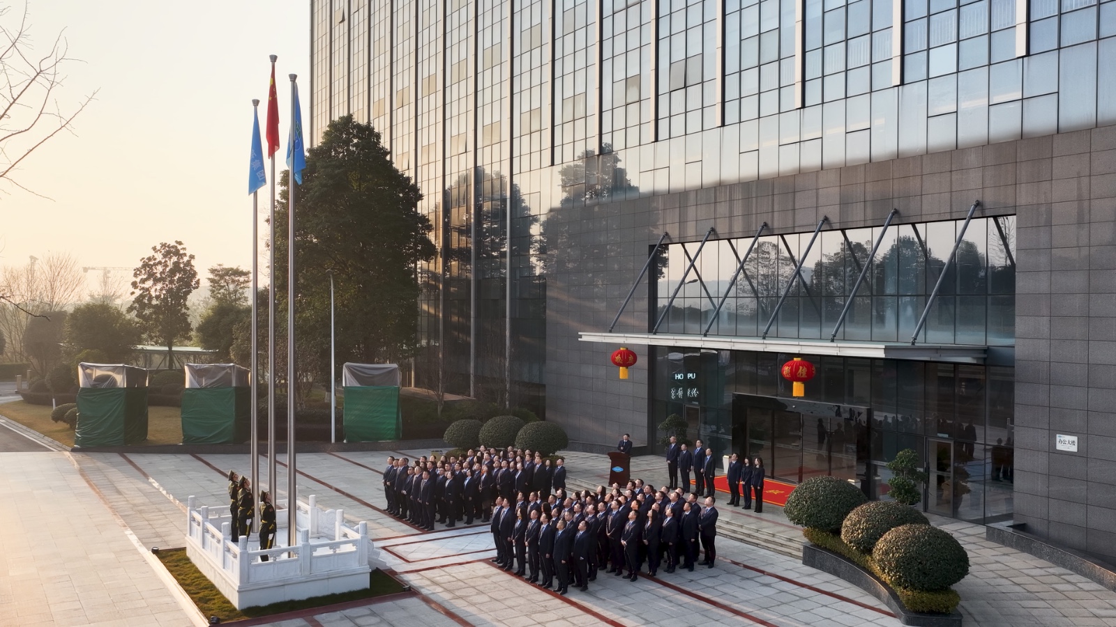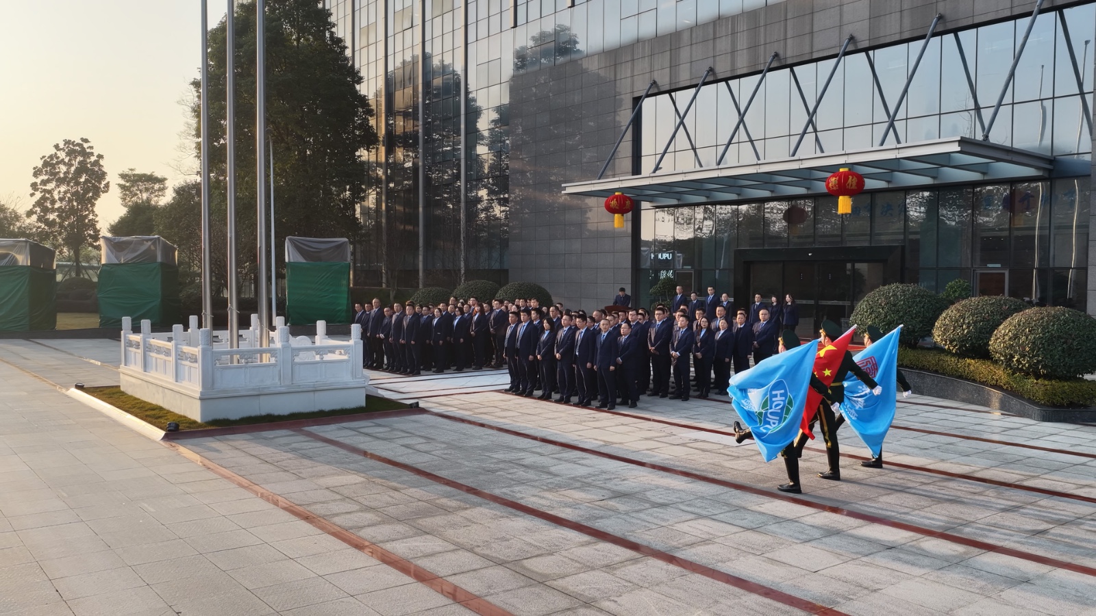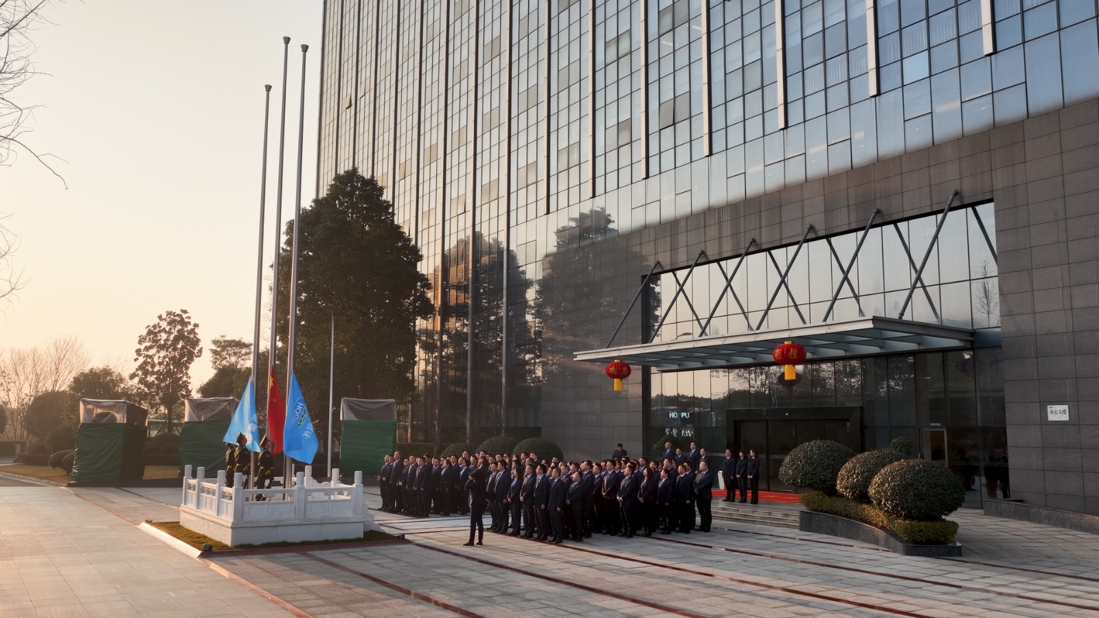 仪式在庄严的国旗与司旗升旗环节中顺利进行。全体人员面向旗帜行注目礼,奏唱国歌,展现出厚普人团结奋进的精神风貌。此次升旗标志着厚普股份在上市扩张、企稳向好的基础上,正式开启崭新的“二五”发展新阶段。