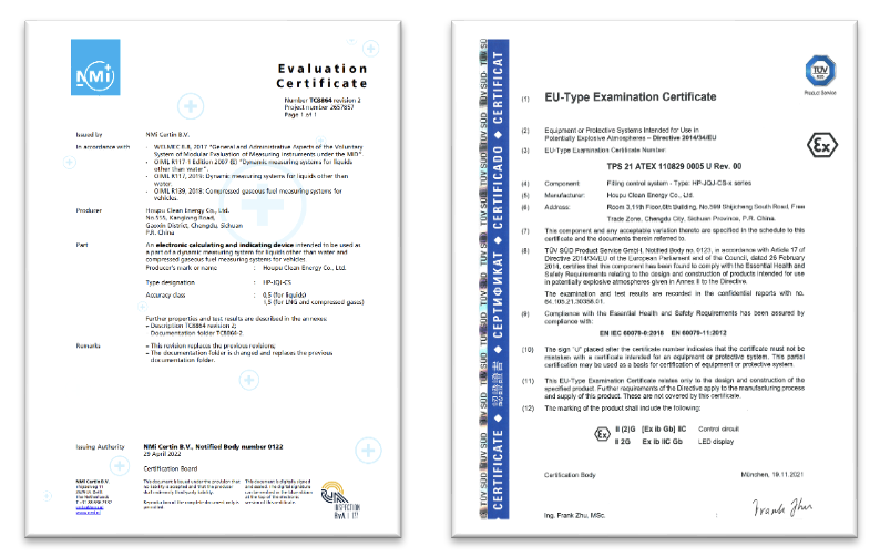 该电控系统按照欧盟标准设计,实现加注设备的高精度计量和高可靠控制,可应用于CNG加气机、LNG加液机、船用计量撬和70MPa/35MPa加氢机。